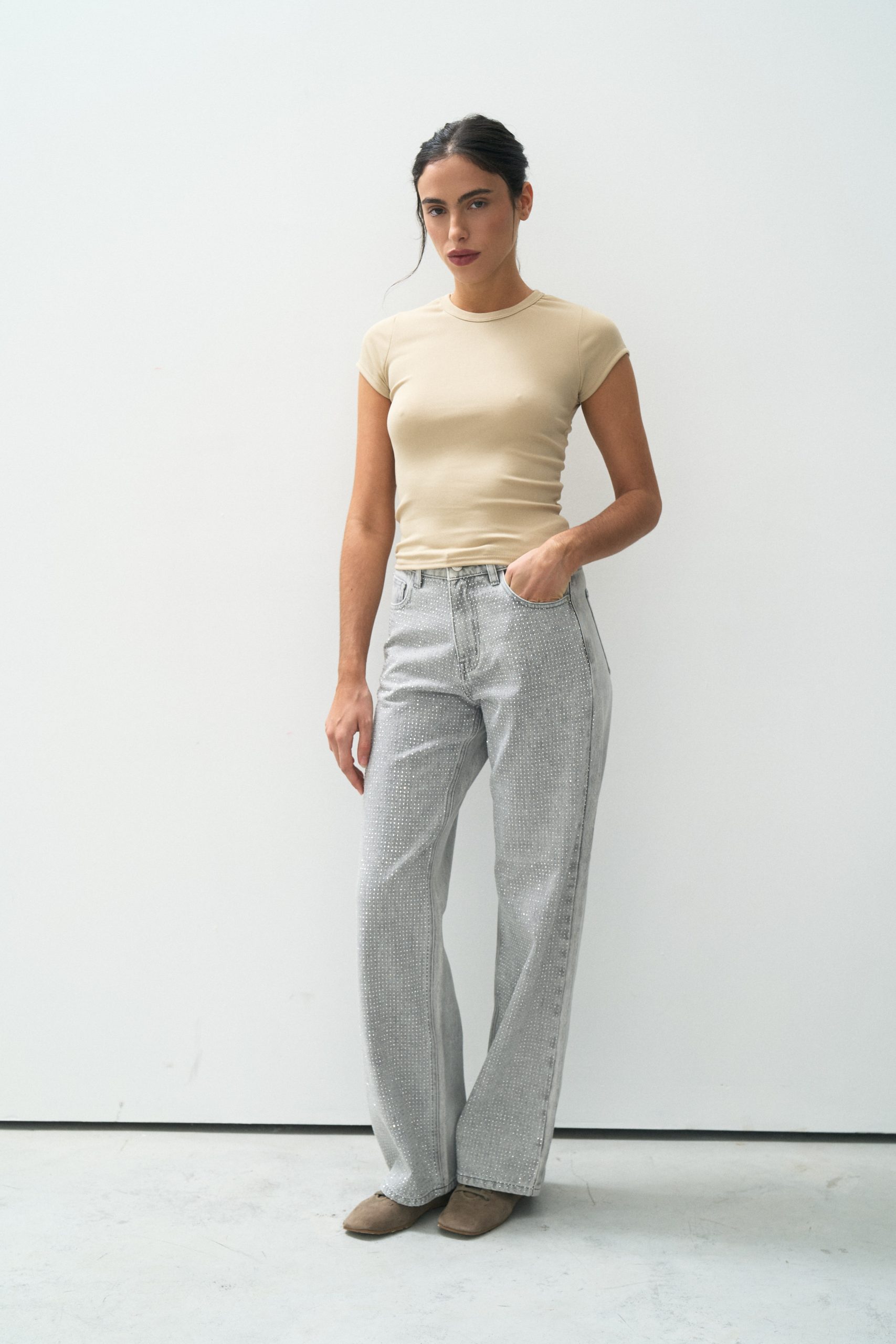 WIDE LEG FULL STRASS GRIS – T810GRIS