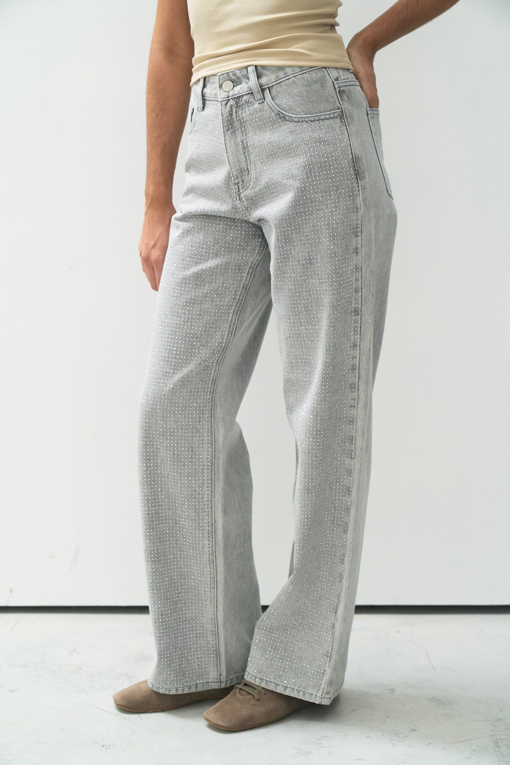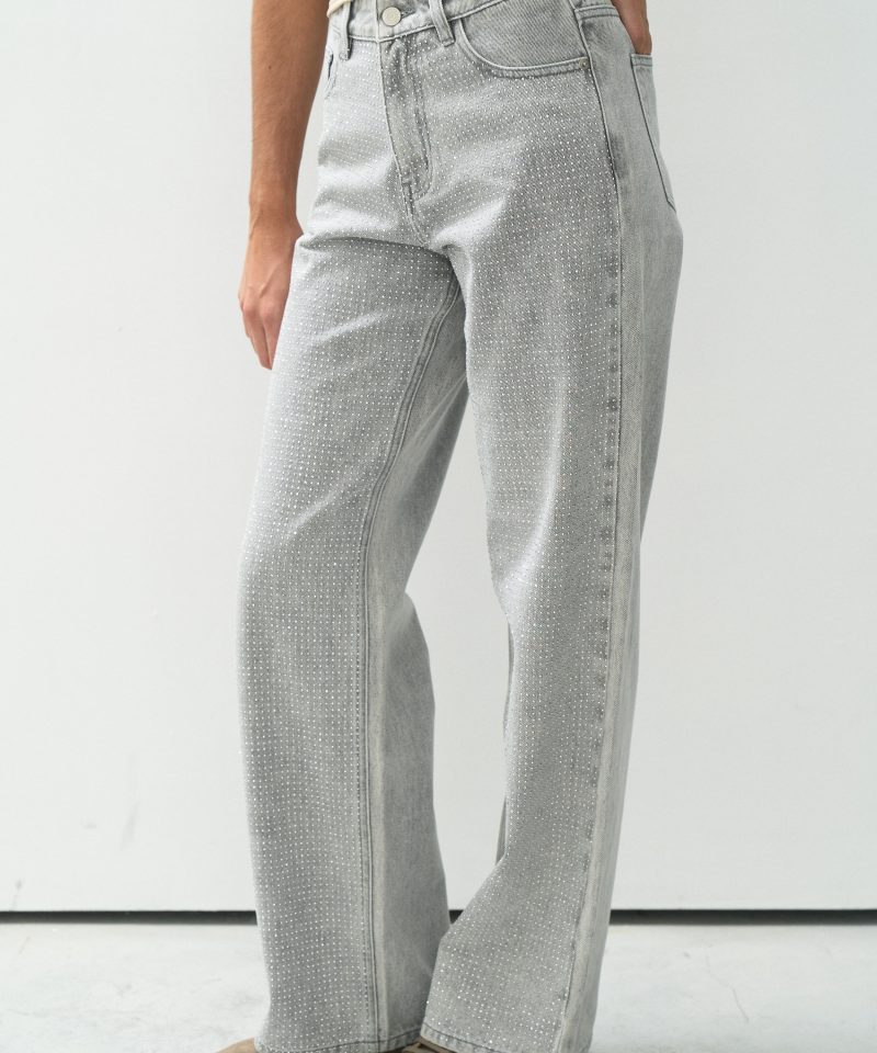 wide leg gris full strass