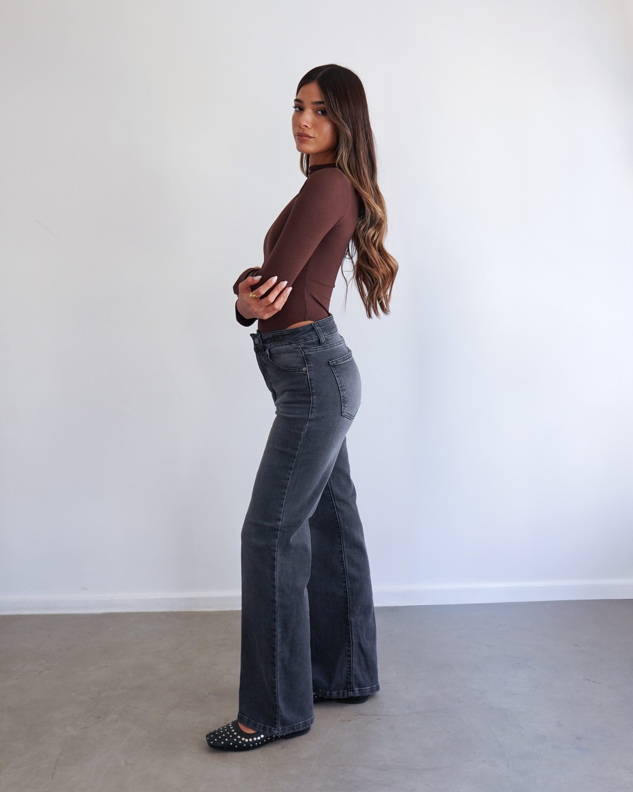 wide leg gris localizado con bigotes
